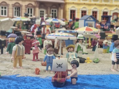 Depuis la fin du mois de mars, des Playmobil ont élu domicile à la salle des fêtes de Portbail. Des bateaux, des Vikings, des sportifs, des châteaux forts, répartis en six tableaux, qui racontent l'histoire du littoral cotentinois. Karine Marie, responsable de la médiathèque de Portbail-sur-Mer