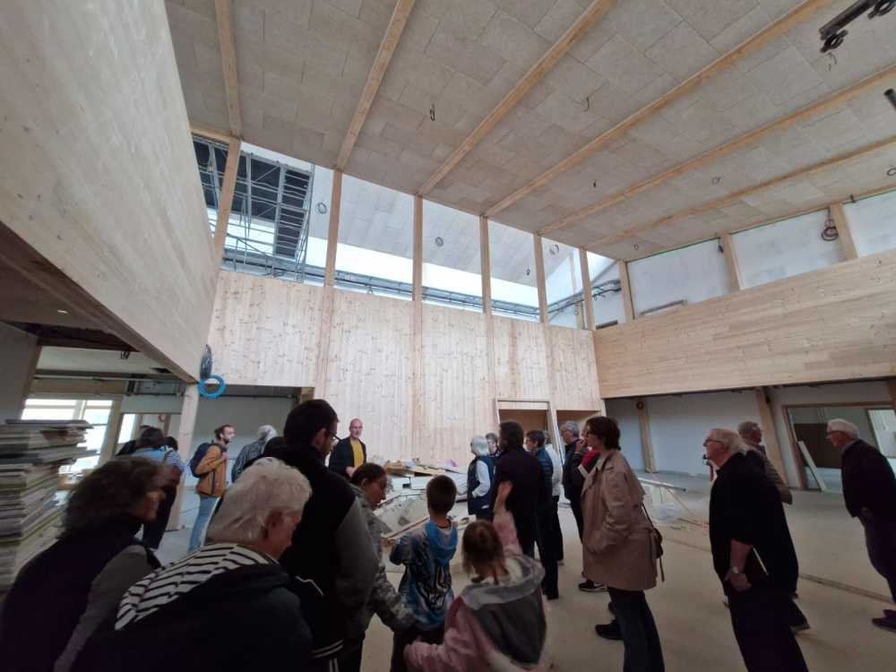 Une vingtaine d'habitants, parents d'élèves et écoliers ont visité le chantier. Ici, dans l'une des futures cours de récréation. - Simon Lebaron