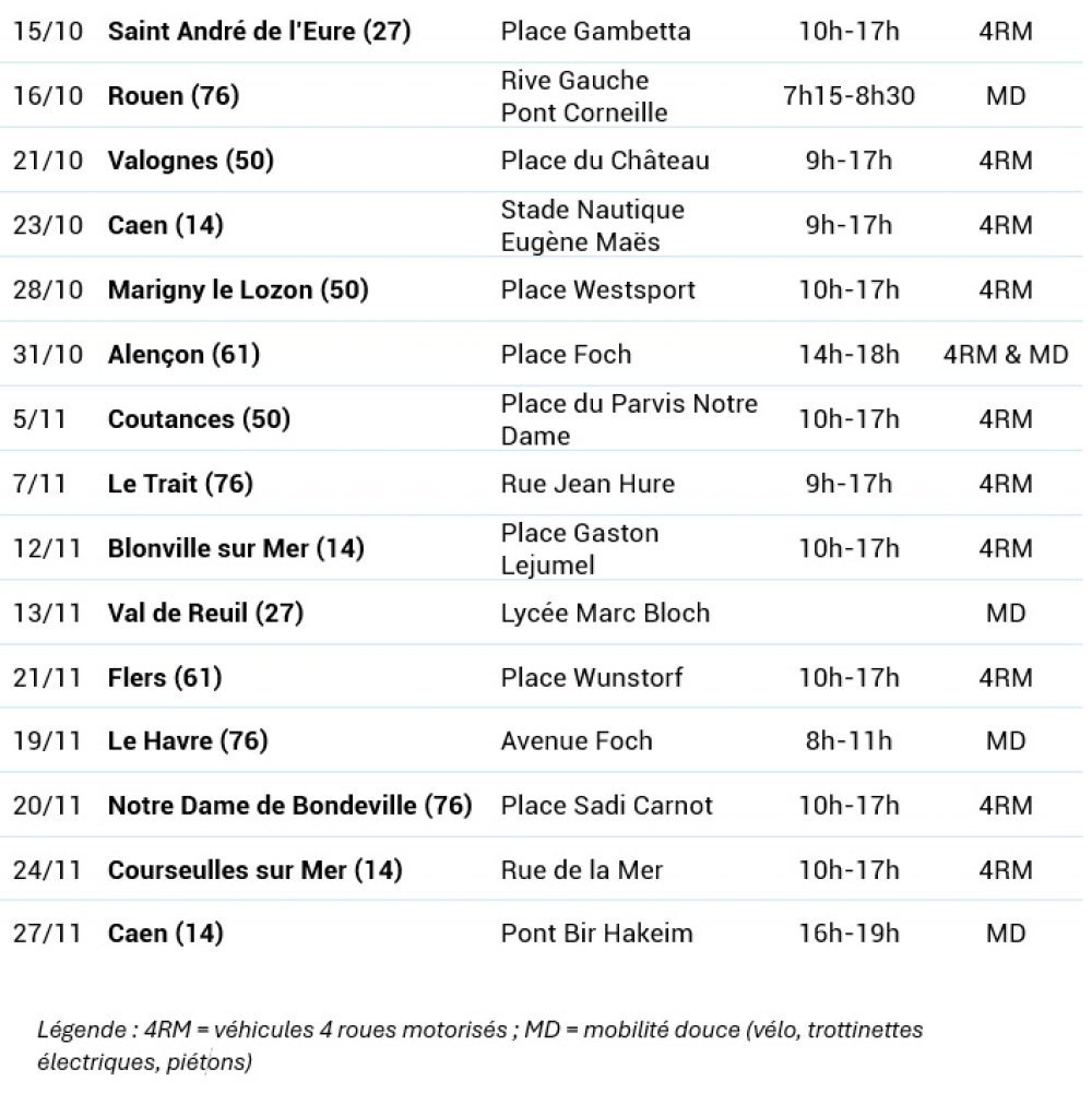 La tournée fait halte dans 15 villes normandes, à raison d'une date unique par commune.
