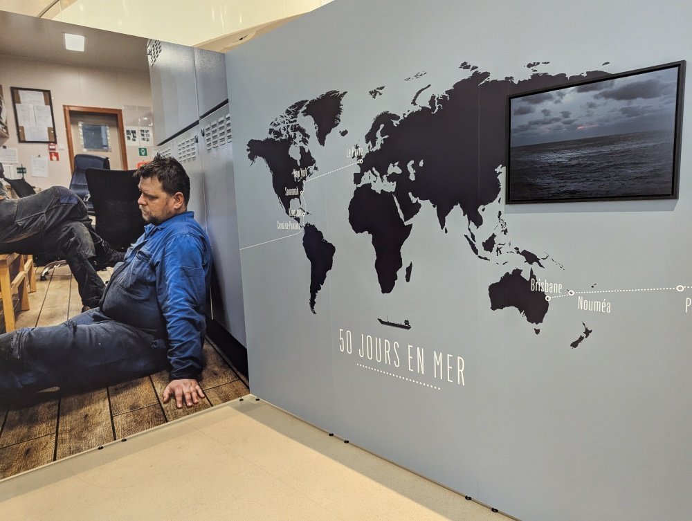 Cinquante et un jours, huit ports et plus de 50 000 kilomètres parcourus du port du Havre à celui de Brisbane, en Australie. Cette traversée est celle vécue par le photographe Grégoire Korganow, entre novembre 2023 et janvier 2024, à bord du porte-conteneurs Le Marius. Il raconte ce voyage au long cours à travers une exposition, intitulée "Face à la mer", dans l'écrin monumental de la bibliothèque universitaire du Havre, jusqu'au vendredi 19 décembre.