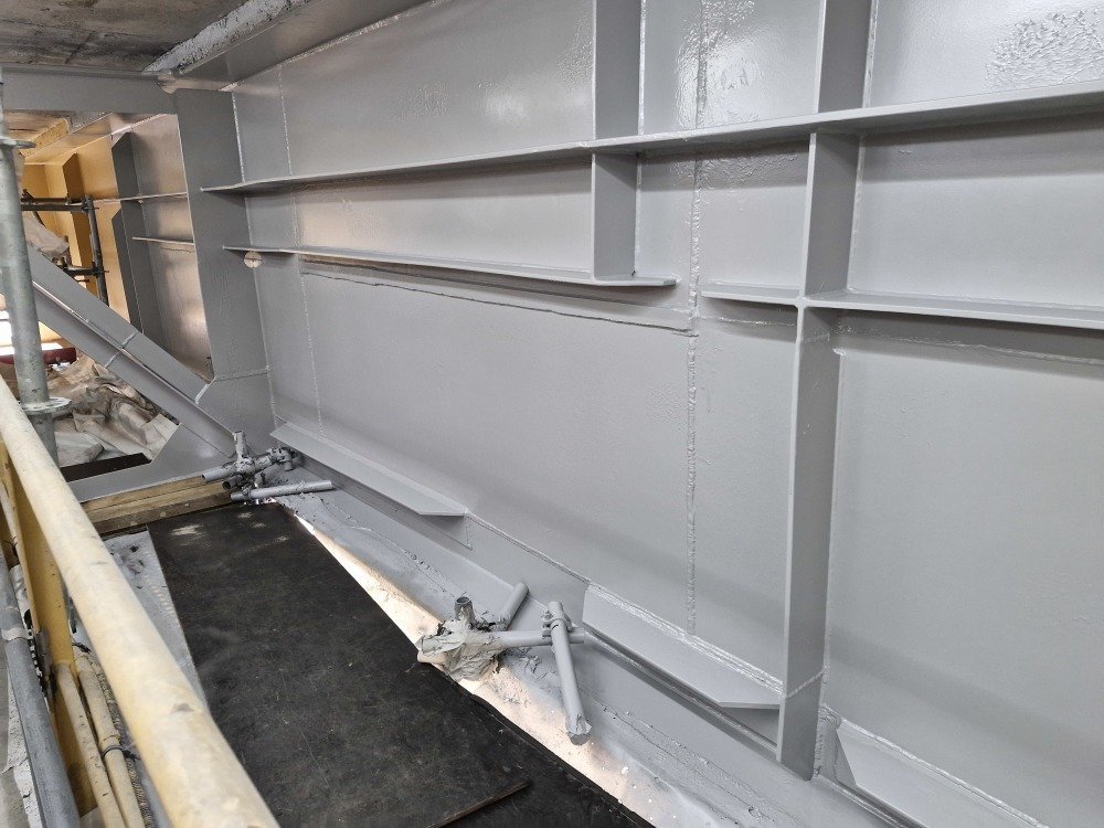 L'une des dernières phases des travaux du pont Guillaume le Conquérant de Rouen a été de repeindre une partie de l'ouvrage pour traiter l'oxydation dans la durée.
