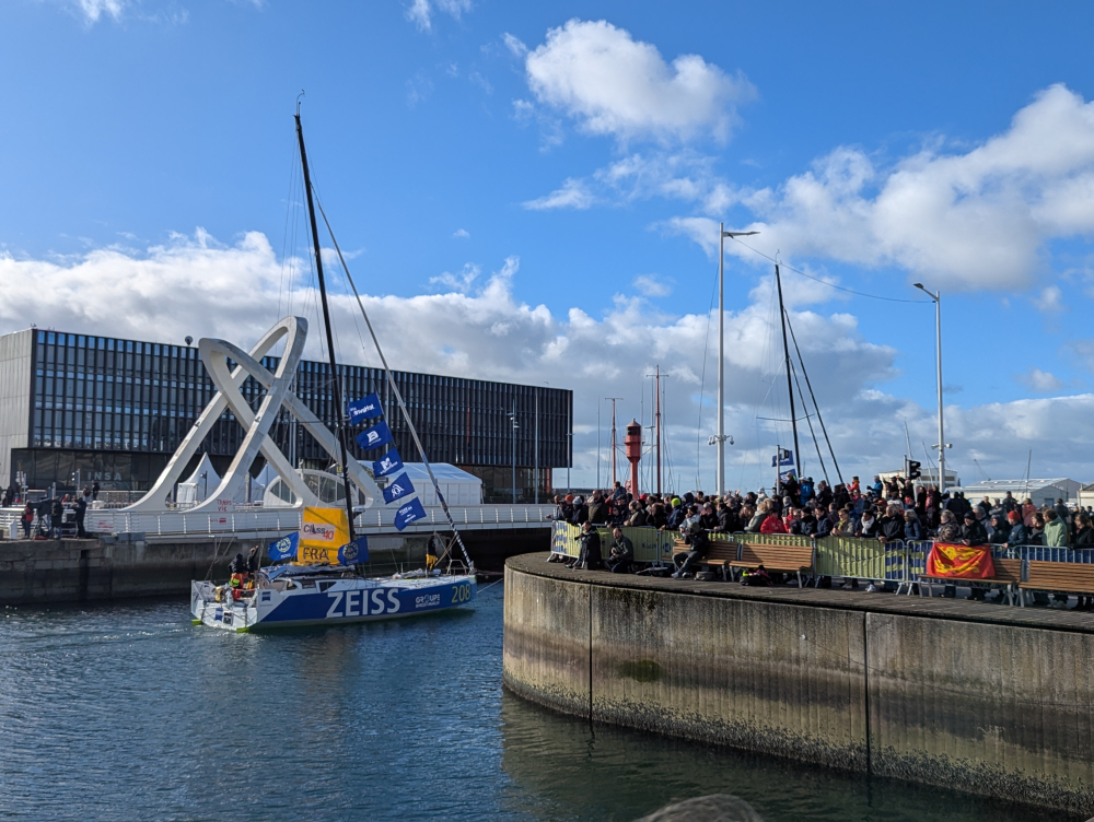 Cette famille caennaise a son chouchou : le Cherbourgeois Louis Duc, l'un des deux Normands de la catégorie Imoca. "Le bateau et le skipper viennent de faire le Vendée Globe et ils sont déjà là, devant nous !" commente l'aînée de la famille qui a eu la chance de faire un stage avec le marin.