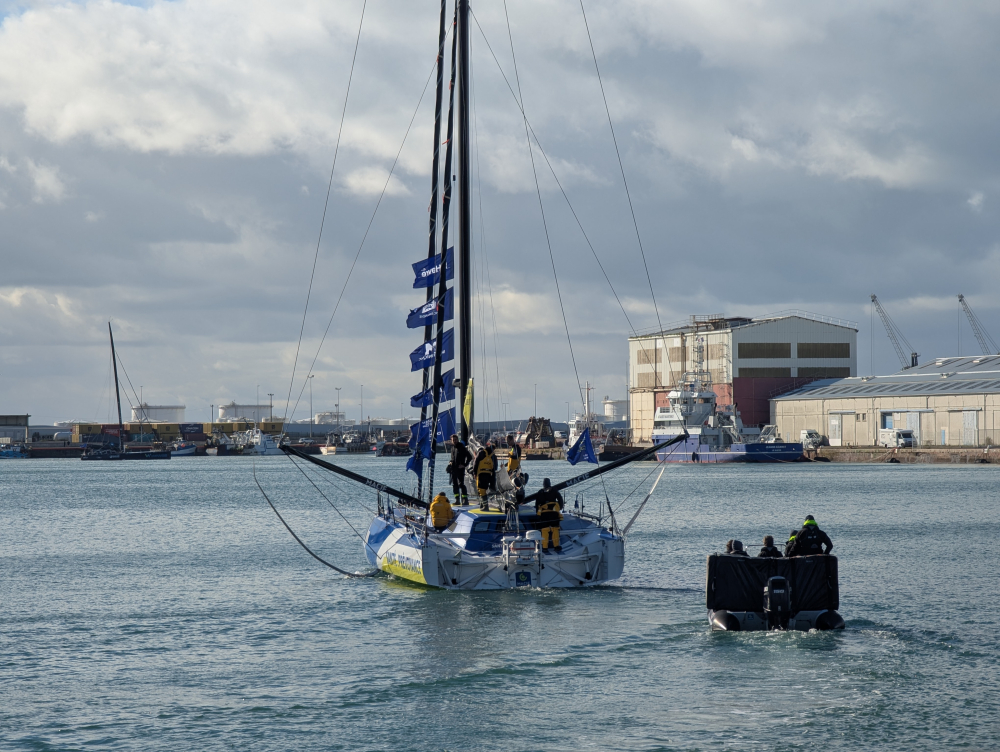 Ultim (bassin de l'Eure) : un appareillage toutes les 3 minutes, entre 11h et 11h09 (d'abord Banque Populaire, puis Sodebo, puis SVR Lazartigue et enfin Actual)