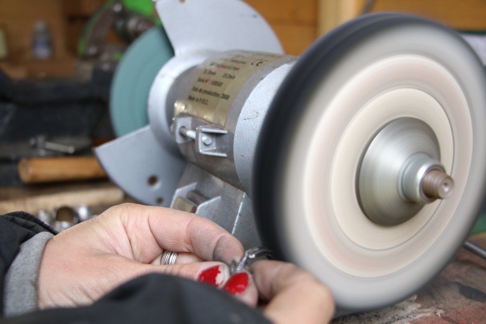 Après l'étape de l'émerisage puis celle pour donner la forme à la bague, il faut ensuite passer au polissage. Un moment important parce qu'il permet de rendre l'argent brillant. Il faudra ensuite nettoyer la bague.