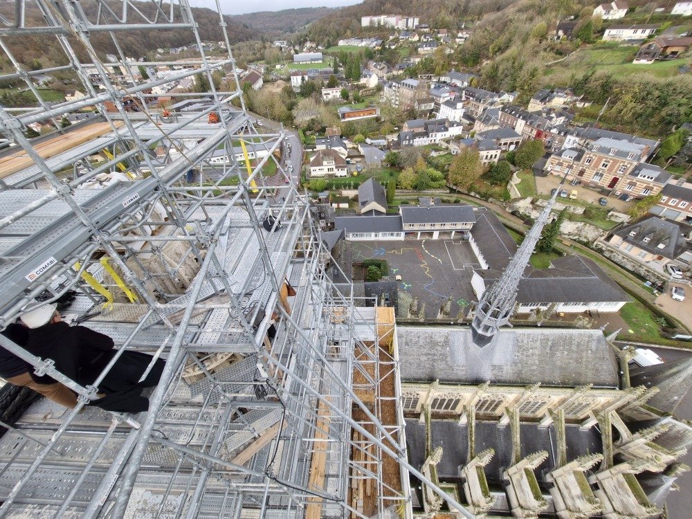 Reportage : le clocher de Caudebec en chantier