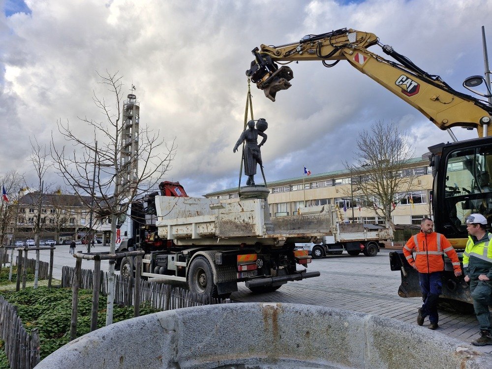 Ça y est, elle est de retour à Saint-Lô ! La statue de la Laitière Normande est revenue sur la place Charles de Gaulle, mardi 2 décembre. Elle avait été retirée du centre-ville il y a deux ans, en 2023, pour permettre les travaux de rénovation de la place. L'œuvre de Louis Derbré, financée en 1984 par une souscription lancée par le commerçant André Leplanquais, a donc retrouvé une place centrale dans la ville préfecture. Elle a été installée à l'entrée de la place Général de Gaulle face à la rue du Neufbourg.