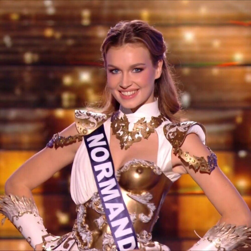 Il est 23h. Miss Normandie s'avance, appelée première du Top 12. Sûre d'elle, sourire franc, Victoire Dupuis lance un "j'attendais ce moment avec impatience" qui fait vibrer la salle. Déterminée, la Rouennaise de 20 ans rappelle son rêve : devenir présentatrice télé. Un clin d'œil appuyé à sa région plus tard : "Bonjour la Normandie !" et le ton est donné.