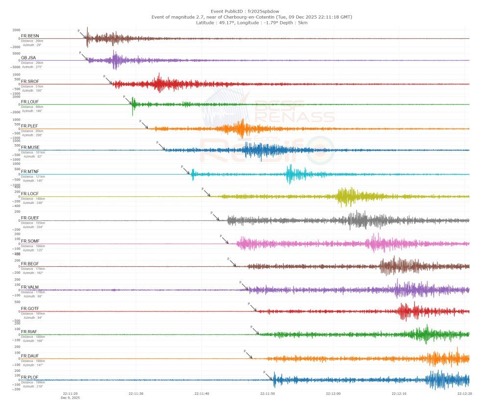 Plusieurs sismographe ont relevé cet événement au large de Pirou. - BCSF RENASS