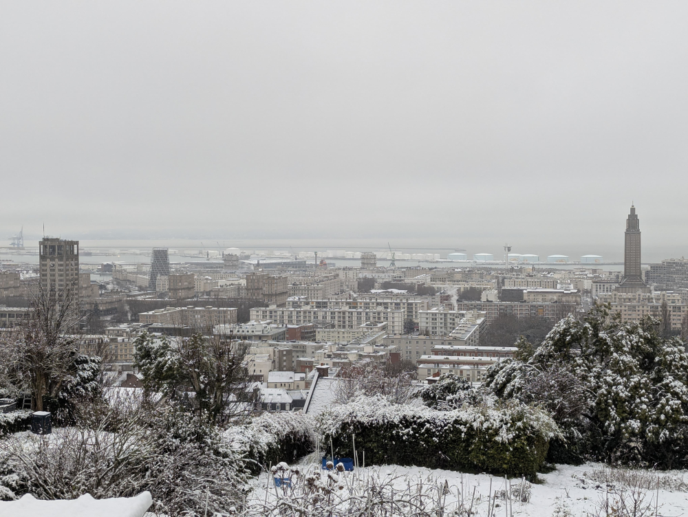 Depuis la mi-journée, la neige est moins continue sur certains secteurs, mais elle s’est intensifiée à midi autour du Havre et ses alentours.