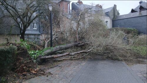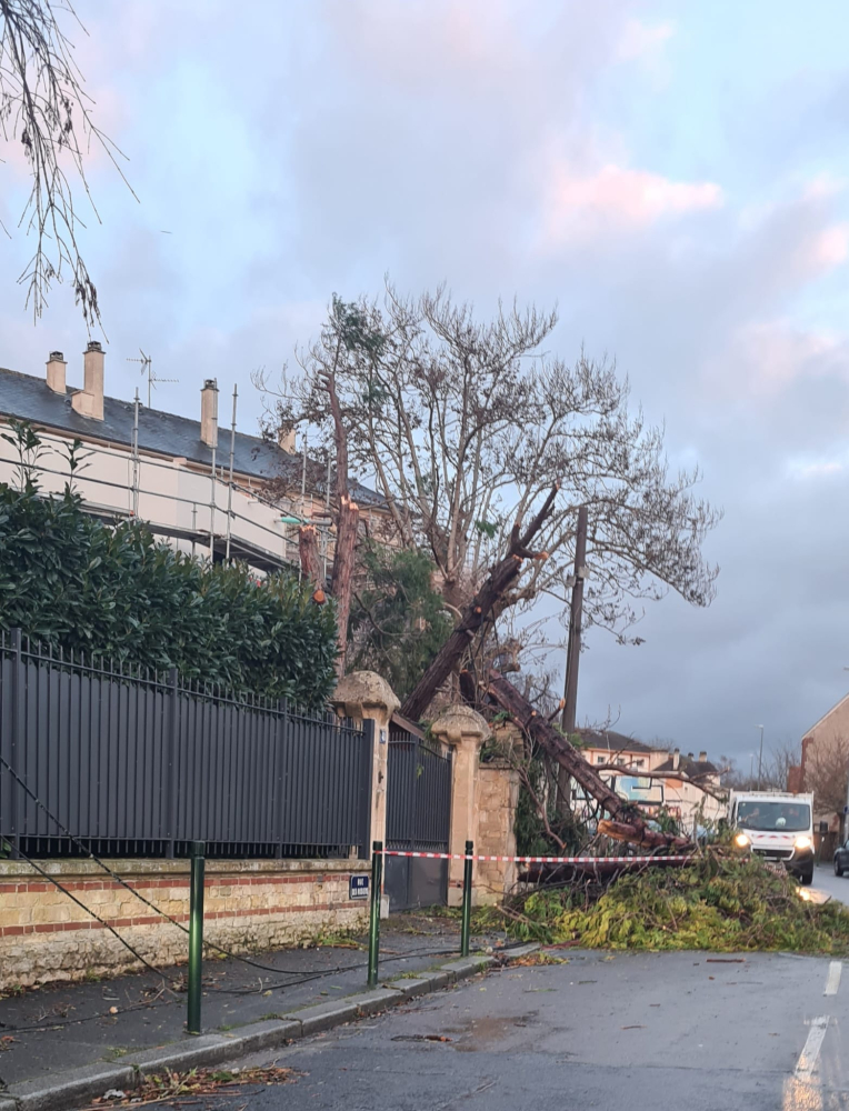 Des bouleaux sont tombés sur la parcelle de l’ancienne annexe Jean Prévost, quelques branches reposent sur la toiture de l’école Léopoldine Hugo. Une intervention est programmée pour leur retrait.