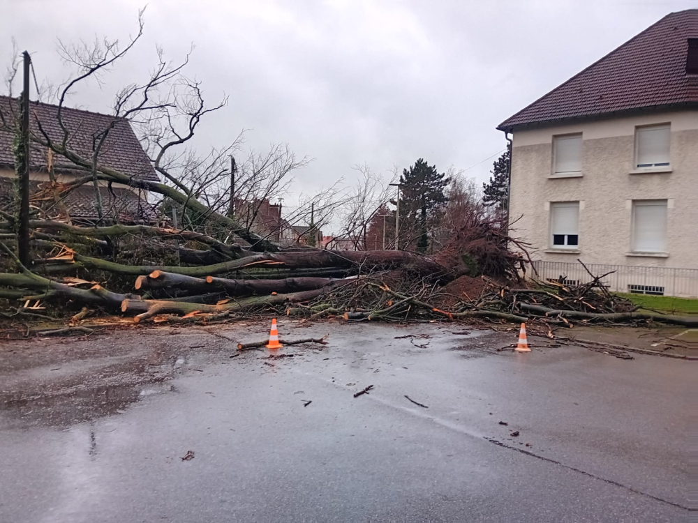À Yvetot, en Seine-Maritime, la situation est "globalement maîtrisée" annonce la municipalité, à la mi-journée. Des mâts d'éclairage électrique, arbres ou barrières sont tombées sur la chaussée.