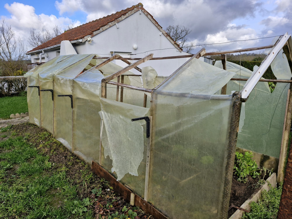Dans ce hameau de La Haye d'Ectot, près de Barneville, dans la Manche, la serre n'a pas résisté à Goretti.