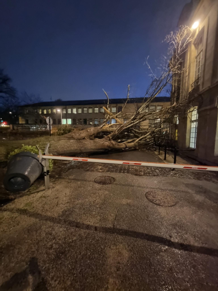 Cette nuit, les rafales ont déraciné un arbre situé dans l'enceinte du Conseil Régional près de l'Abbaye aux Dames à Caen.