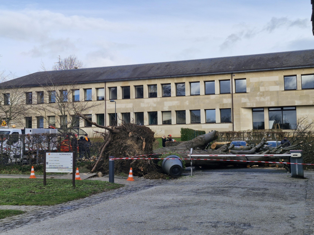 Les agents sont toujours en train d'intervenir autour de l'arbre tombé cette nuit au conseil régional à Caen.