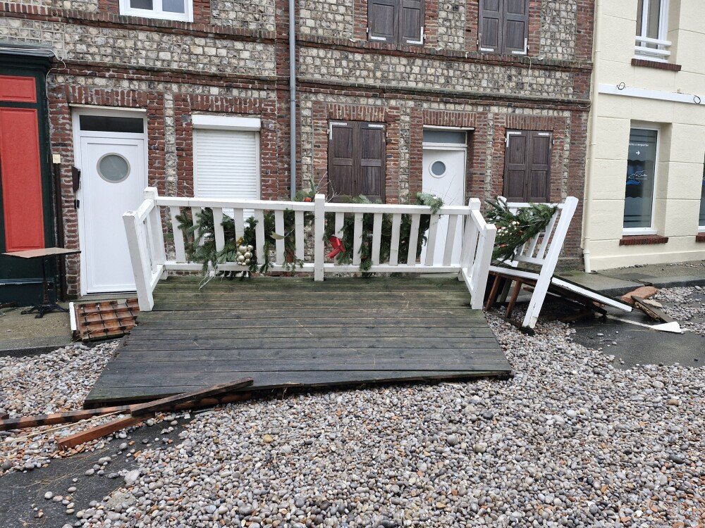 Des fragments de terrasses, de mobilier urbain, des galets ont envahi les rues de la ville. "La tempête a englouti le premier rang du littoral", souligne Eric Jouane, directeur du Service départemental d'incendie et de secours (Sdis 76).